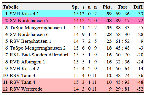 Im ersten Spiel des Tages setzte sich Tann IV mit 3:2 im vereinsinternen Heimderby gegen Tann III durch. Für Tann III folgte ein umkämpfter 6:5-Erfolg gegen RKL Bad Sooden-Allendorf. Gegen den Tabellenzweiten SV Nordshausen VII musste sich die Mannschaft jedoch deutlich mit 2:10 geschlagen geben, ehe auch das Spiel gegen RVE Albungen I mit 1:5 an die Gäste ging. Tann IV unterlag im weiteren Verlauf dem Aufstiegskandidaten SV Nordshausen VII mit 2:9 sowie dem Tagessieger RVE Albungen I mit 2:5. Trotz dieser Niederlagen erkämpfte sich die Mannschaft gegen RKL Bad Sooden-Allendorf ein 3:3-Unentschieden und sammelte damit einen weiteren wichtigen Punkt im Kampf um den Klassenerhalt.